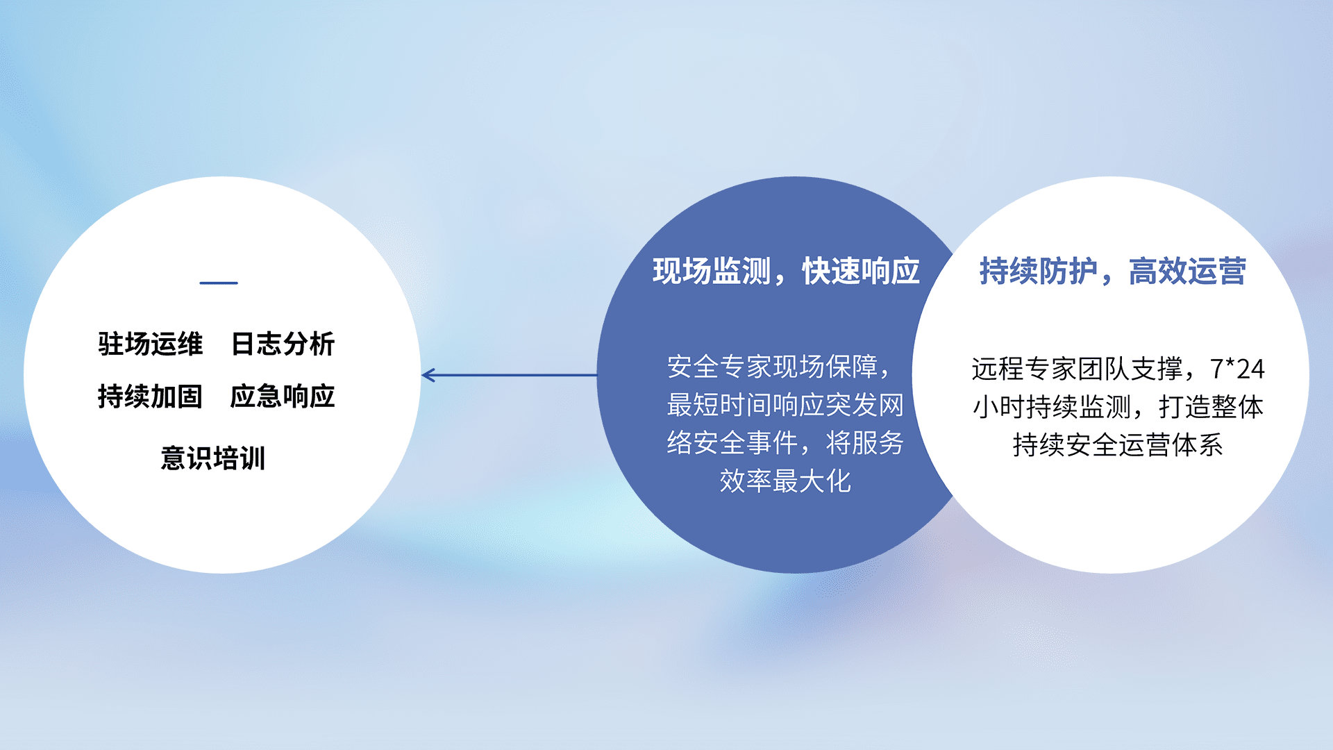 针对客户行业特性,,提供专属的一站式安全管理服务,,,,帮助客户全面感知网络空间威胁,,,通过安全专家的线上、、、线下防护支持,,,,实现风险闭环,,将安全保障常态化,,为客户打造常态化安全运维运营服务。。